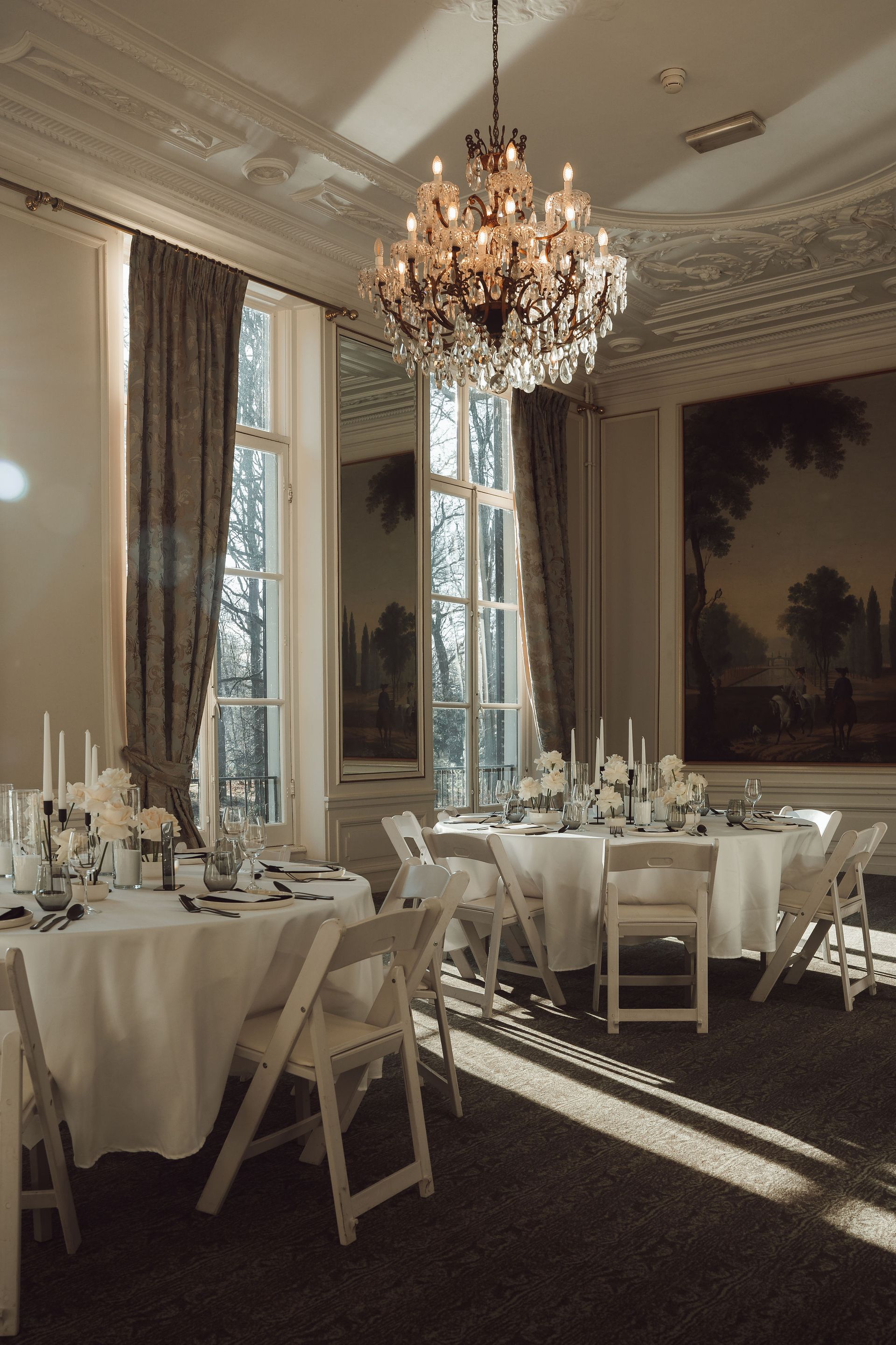 Stap virtueel binnen in de sfeervolle zalen van Kasteel Oud Poelgeest. Ontdek de verschillende ruimtes en opstellingen, en zie hoe onze unieke locatie jouw feest of viering tot een onvergetelijk moment maakt. Inspiratie en sfeer, gewoon vanaf je eigen plek.